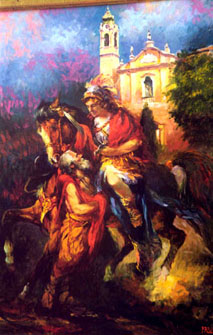 I 12 quadri del tamburo sono dedicati a S. Martino e ricordano i fatti più salienti della sua vita: