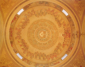 Sono imponenti gli affreschi della cupola con quadri della storia di San Martino, protettore della parrocchia, nel tamburo; mentre nella volta vi e il volo dei sette Cori Angelici osannanti a Dio, che dalla sommità della cupola sembra benedire il popolo orante.