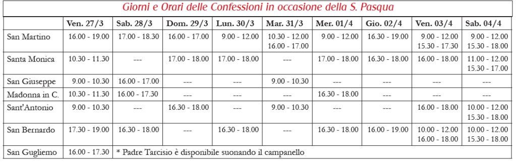 il 27 Marzo dalle 20.30 alle 22.00 – Confessioni in San Martino e in San Bernardo